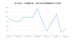 2022年3月,宝马X4销量为442辆,同比下降59.41%,环比增长131.41%。2021年03月-2022年03月份,宝马X4销量为12128辆,同比下降12.33%。