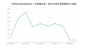 2022年3月,领克02 Hatchback销量为50辆,环比增长2.04%。2021年03月-2022年03月份,领克02 Hatchback销量为3557辆,