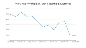 2022年3月,丰田C-HR销量为978辆,同比下降80.1%,环比增长20.74%。2021年03月-2022年03月份,丰田C-HR销量为43625辆,同比下降32.11%。
