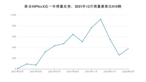 2022年3月,高合HiPhi X销量为378辆,同比增长3%,环比增长47.66%。2021年03月-2022年03月份,高合HiPhi X销量为5397辆,同比增长12%。