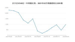 2022年3月,沃尔沃XC40销量为1004辆,同比下降55.98%,环比增长116.85%。2021年03月-2022年03月份,沃尔沃XC40销量为14581辆,同比下降47.19%。