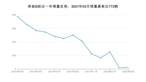 2022年3月,奔驰B级销量为25辆,同比下降96.76%,环比增长47.06%。2021年03月-2022年03月份,奔驰B级销量为5075辆,同比下降55.51%。