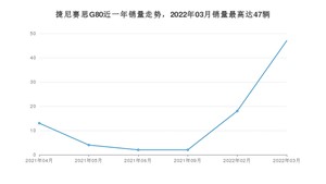 2022年3月,捷尼赛思G80销量为47辆,环比增长161.11%。2021年03月-2022年03月份,捷尼赛思G80销量为86辆,