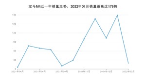 2022年3月,宝马M4销量为18辆,2021年03月-2022年03月份,宝马M4销量为822辆,同比增长202.21%。