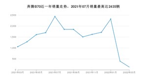 2022年3月,奔腾B70销量为125辆,同比下降88.15%,环比下降68.35%。2021年03月-2022年03月份,奔腾B70销量为19441辆,同比增长254.37%。