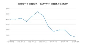 2022年3月,途铠销量为635辆,同比下降84.21%,环比下降32.95%。2021年03月-2022年03月份,途铠销量为40319辆,同比下降30.15%。