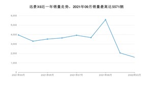 2022年3月,远景X6销量为1594辆,同比下降59.68%,环比下降22.32%。2021年03月-2022年03月份,远景X6销量为31223辆,同比下降65.96%。