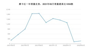 2022年3月,摩卡销量为171辆,环比增长44.92%。2021年03月-2022年03月份,摩卡销量为11247辆,
