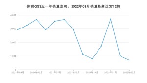 2022年3月,传祺GS3销量为699辆,同比下降76.22%,环比下降30.93%。2021年03月-2022年03月份,传祺GS3销量为32090辆,同比下降23.67%。