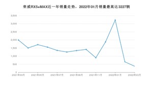 2022年3月,荣威RX5 MAX销量为378辆,同比下降81.03%,环比下降41.58%。2021年03月-2022年03月份,荣威RX5 MAX销量为19150辆,同比下降57.17%。