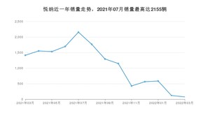 2022年3月,悦纳销量为75辆,同比下降94.7%,环比下降37.5%。2021年03月-2022年03月份,悦纳销量为14324辆,同比下降46.56%。