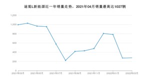 2022年3月,途观L新能源销量为278辆,同比下降72.06%,环比增长2.21%。2021年03月-2022年03月份,途观L新能源销量为8205辆,同比增长24.19%。