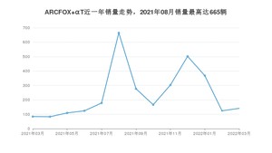 2022年3月,ARCFOX αT销量为141辆,同比增长67.86%,环比增长13.71%。2021年03月-2022年03月份,ARCFOX αT销量为3124辆,同比增长384.34%。