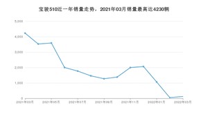 2022年3月,宝骏510销量为120辆,同比下降97.16%,环比增长130.77%。2021年03月-2022年03月份,宝骏510销量为24543辆,同比下降67.35%。