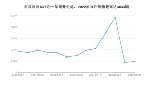 2022年3月,东风风神AX7销量为976辆,同比下降47.36%,环比增长10.78%。2021年03月-2022年03月份,东风风神AX7销量为26010辆,同比增长3.4%。