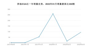 2022年3月,奔驰EQA销量为95辆,环比增长493.75%。2021年03月-2022年03月份,奔驰EQA销量为429辆,