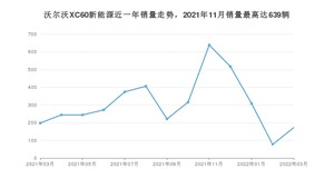 2022年3月,沃尔沃XC60新能源销量为172辆,同比下降13.13%,环比增长123.38%。2021年03月-2022年03月份,沃尔沃XC60新能源销量为3989辆,同比增长240.07%。