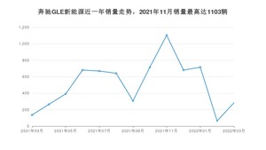 2022年3月,奔驰GLE新能源销量为283辆,同比增长108.09%,环比增长349.21%。2021年03月-2022年03月份,奔驰GLE新能源销量为6647辆,同比增长1%。