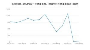 2022年3月,长安CS85 COUPE销量为41辆,同比下降95.57%,环比增长141.18%。2021年03月-2022年03月份,长安CS85 COUPE销量为10532辆,同比下降37.37%。