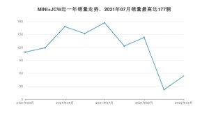 2022年3月,MINI JCW销量为54辆,同比下降50.46%,环比增长145.45%。2021年03月-2022年03月份,MINI JCW销量为1067辆,同比增长25.09%。