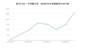 2022年3月,威马E.5销量为2671辆,环比增长76.89%。2021年03月-2022年03月份,威马E.5销量为9932辆,