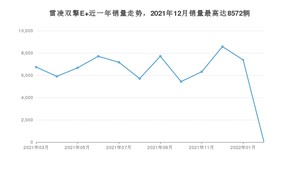 2022年3月,雷凌双擎E+销量为45辆,同比下降99.33%,2021年03月-2022年03月份,雷凌双擎E+销量为75340辆,同比增长125.4%。