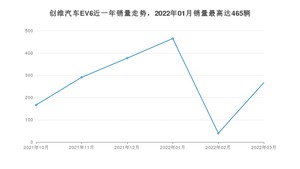 2022年3月,创维汽车EV6销量为267辆,环比增长567.5%。2021年03月-2022年03月份,创维汽车EV6销量为1607辆,