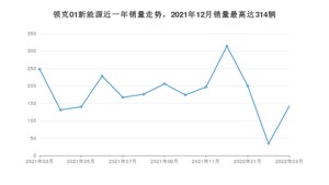 2022年3月,领克01新能源销量为142辆,同比下降42.74%,环比增长317.65%。2021年03月-2022年03月份,领克01新能源销量为2357辆,同比增长198.35%。
