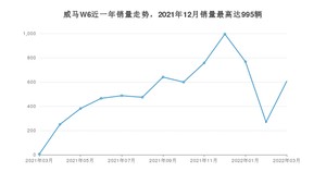 2022年3月,威马W6销量为606辆,同比增长12%,环比增长125.28%。2021年03月-2022年03月份,威马W6销量为6695辆,同比增长133%。