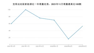 2022年3月,发现运动版新能源销量为53辆,环比增长231.25%。2021年03月-2022年03月份,发现运动版新能源销量为375辆,