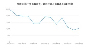 2022年3月,荣威Ei5销量为1043辆,同比下降56.56%,环比增长14.11%。2021年03月-2022年03月份,荣威Ei5销量为21293辆,同比增长26.68%。
