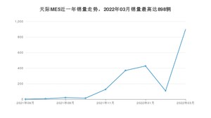 2022年3月,天际ME5销量为898辆,环比增长731.48%。2021年03月-2022年03月份,天际ME5销量为1970辆,
