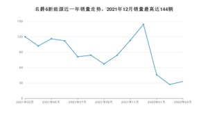 2022年3月,名爵6新能源销量为33辆,同比下降72.5%,环比增长22.22%。2021年03月-2022年03月份,名爵6新能源销量为1129辆,同比下降4.24%。