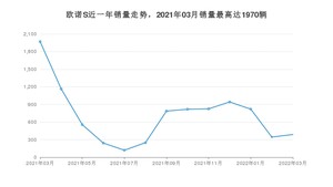 2022年3月,欧诺S销量为387辆,同比下降80.36%,环比增长12.5%。2021年03月-2022年03月份,欧诺S销量为9224辆,同比下降55.67%。