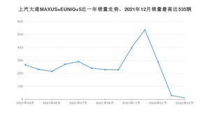 2022年3月,上汽大通MAXUS EUNIQ 5销量为11辆,同比下降95.85%,环比下降62.07%。2021年03月-2022年03月份,上汽大通MAXUS EUNIQ 5销量为3223辆,同比增长79.85%。