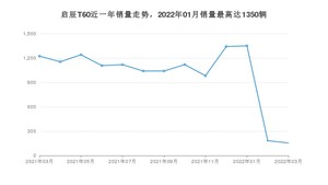 2022年3月,启辰T60销量为155辆,同比下降87.33%,环比下降15.3%。2021年03月-2022年03月份,启辰T60销量为13052辆,同比下降34.21%。