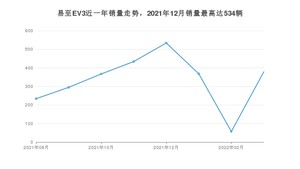 2022年3月,易至EV3销量为379辆,环比增长564.91%。2021年03月-2022年03月份,易至EV3销量为2668辆,