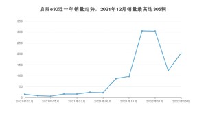 2022年3月,启辰e30销量为204辆,同比增长1%,环比增长65.85%。2021年03月-2022年03月份,启辰e30销量为1227辆,同比增长238.95%。