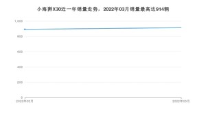 2022年3月,小海狮X30销量为914辆,环比增长2.47%。2021年03月-2022年03月份,小海狮X30销量为1806辆,