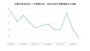 2022年3月,名爵HS新能源销量为23辆,同比下降83.57%,2021年03月-2022年03月份,名爵HS新能源销量为1014辆,同比增长50.22%。