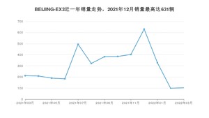 2022年3月,BEIJING-EX3销量为103辆,同比下降51.42%,环比增长4.04%。2021年03月-2022年03月份,BEIJING-EX3销量为3945辆,同比增长17.13%。