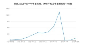 2022年3月,欧尚A600EV销量为104辆,同比增长372.73%,环比增长593.33%。2021年03月-2022年03月份,欧尚A600EV销量为3752辆,同比增长5%。