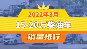 2022年3月的乘用车销量数据已经出炉,据众车网汽车行业数据监测显示,3月国内乘用车市场销量达到117.97万辆,同比下降34.16%,环比增长31.39%。每月各个细分市场的销量排行榜也成为了大家所关注的话题,今天众车网为大家带来了2022年3月15-20万柴油车的销量排行榜单,有哪些车型能跻身销量榜呢?下面我们直接看数据。