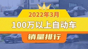2022年3月的乘用车销量数据已经出炉,据众车网汽车行业数据监测显示,3月国内乘用车市场销量达到117.97万辆,同比下降34.16%,环比增长31.39%。每月各个细分市场的销量排行榜也成为了大家所关注的话题,今天众车网为大家带来了2022年3月100万以上自动车的销量排行榜单,有哪些车型能跻身销量榜呢?下面我们直接看数据。