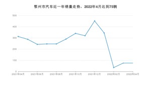 2022年4月,鄂州市汽车总销量为75辆,同比下降75.96%,环比持平。2021年04月-2022年04月份,鄂州市总销量为3261辆,同比下降25.85%。在最近1年中,鄂州市销量在2021年12月达到最高,销量为451辆。