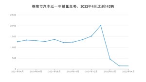 2022年4月,铜陵市汽车总销量为143辆,同比下降88.65%,环比持平。2021年04月-2022年04月份,铜陵市总销量为14627辆,同比下降21.97%。在最近1年中,铜陵市销量在2022年01月达到最高,销量为2007辆。