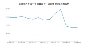 2022年4月,盐城市汽车总销量为3390辆,同比下降41.84%,环比持平。2021年04月-2022年04月份,盐城市总销量为70690辆,同比下降22.96%。在最近1年中,盐城市销量在2022年01月达到最高,销量为7828辆。