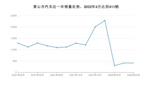 2022年4月,黄山市汽车总销量为411辆,同比下降67.94%,环比持平。2021年04月-2022年04月份,黄山市总销量为14966辆,同比下降13.87%。在最近1年中,黄山市销量在2022年01月达到最高,销量为2284辆。