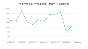 2022年4月,宁德市汽车总销量为985辆,同比下降27.31%,环比持平。2021年04月-2022年04月份,宁德市总销量为17566辆,同比增长3.21%。在最近1年中,宁德市销量在2021年06月达到最高,销量为1987辆。