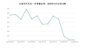 2022年4月,辽源市汽车总销量为13辆,同比下降97.68%,环比持平。2021年04月-2022年04月份,辽源市总销量为5149辆,同比下降19.03%。在最近1年中,辽源市销量在2021年07月达到最高,销量为688辆。